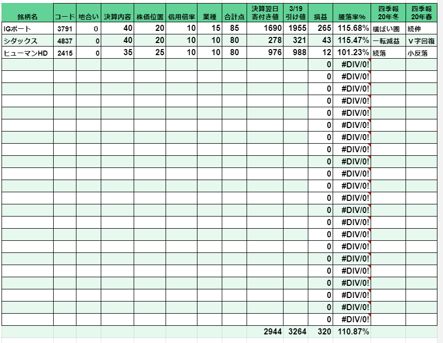 最後にオマケのおすすめ決算銘柄の表です、3銘柄だけですがご覧ください↓