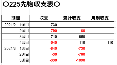 えぇ、そうです、そんな週ですのでわたくしの先物収支は…