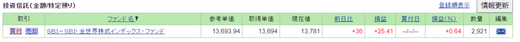 積み立てファンド・・・SBI全世界株式インデックスファンド(愛称雪だるま)