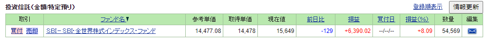 積み立てファンド・・・SBI全世界株式インデックスファンド(愛称雪だるま)